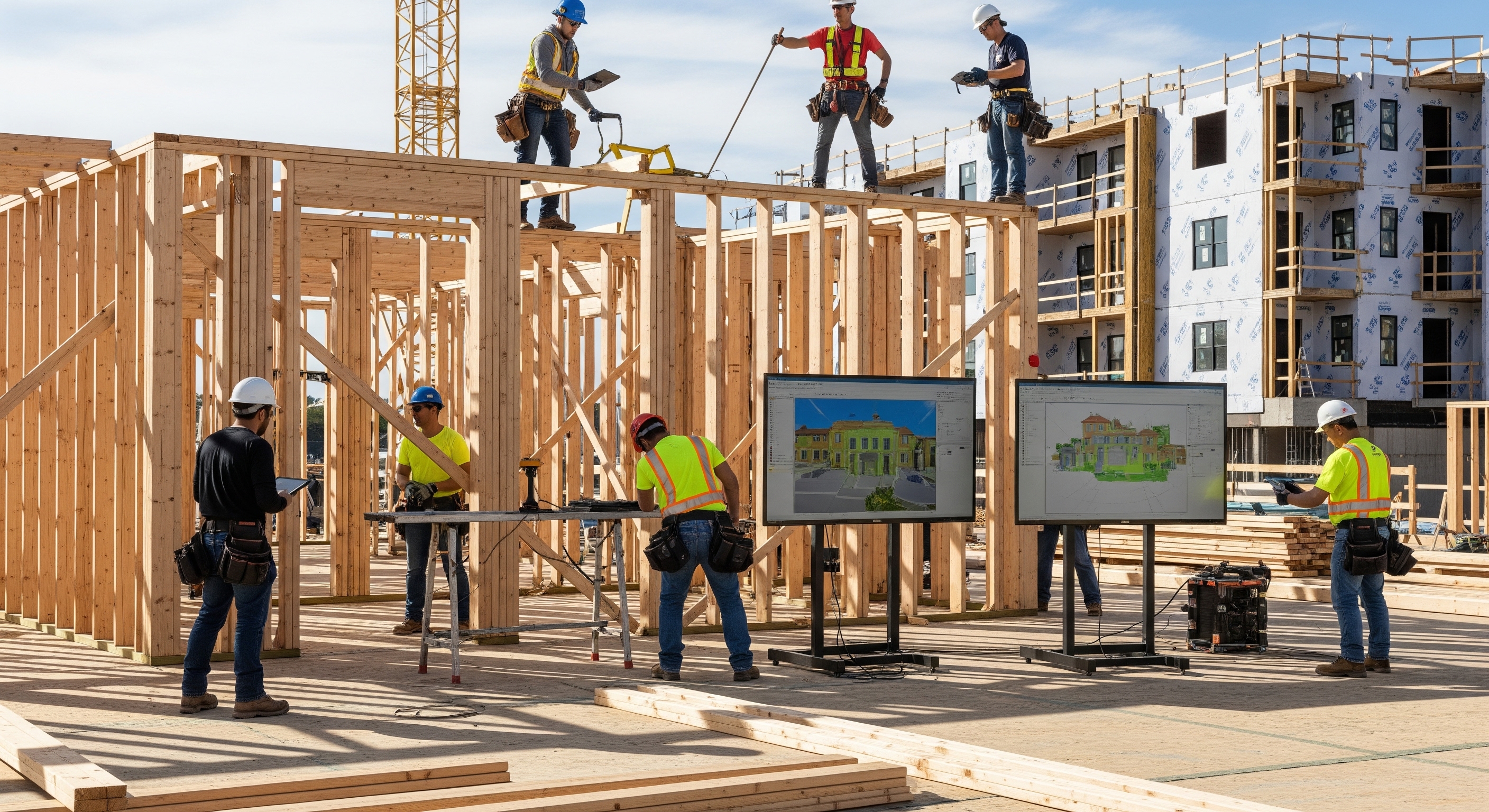 Speed, safety, and accuracy define our framing division. As experts in Type III and Type V wood construction, our crews efficiently frame multi-story residential and mixed-use buildings. We integrate with BIM models to ensure precise rough openings and coordinate seamlessly with MEP trades to prevent costly rework.