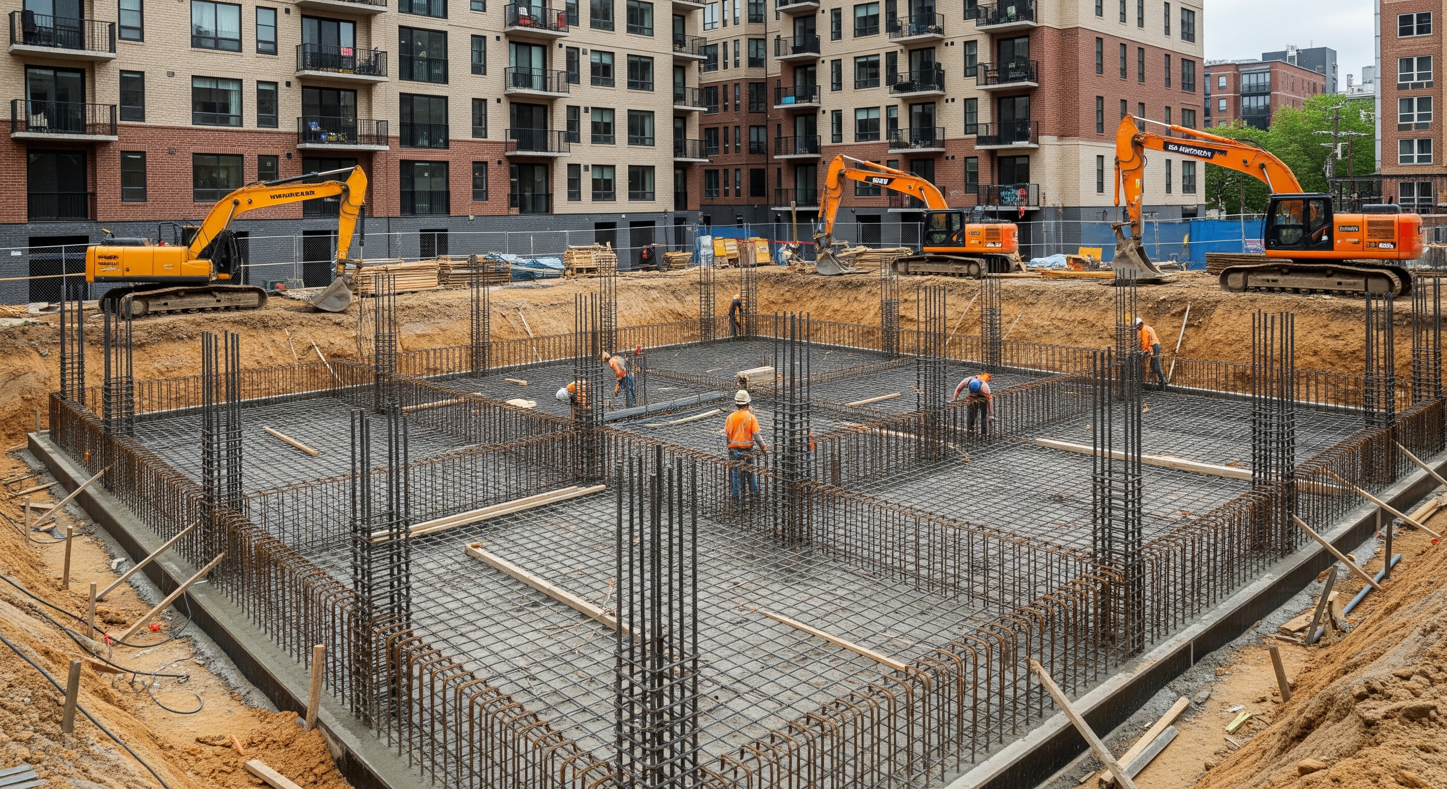 Our crews are experts in complex urban foundation systems. We self-perform excavation, shoring, dewatering, rebar placement, and concrete work for systems ranging from mat slabs to multi-level subterranean structures and the large-scale podium decks crucial for density.